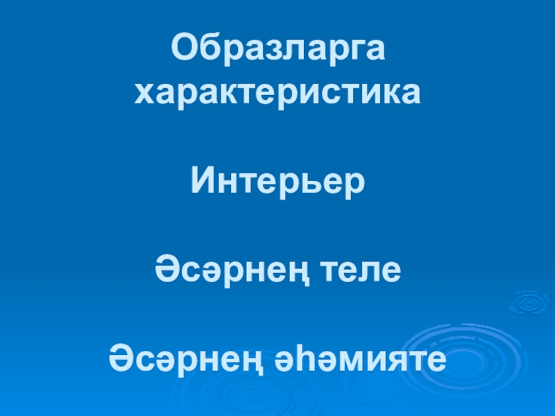 Слайд 19Образларга характеристика Интерьер Әсәрнең теле Әсәрнең әһәмияте