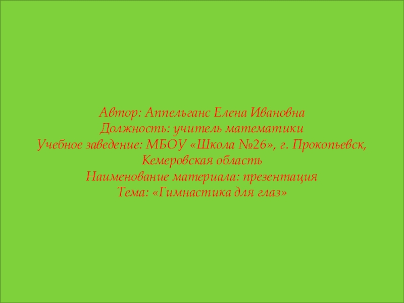 Автор: Аппельганс Елена ИвановнаДолжность: учитель математикиУчебное заведение: МБОУ «Школа №26», г. Прокопьевск, Кемеровская областьНаименование материала: презентацияТема: «Гимнастика