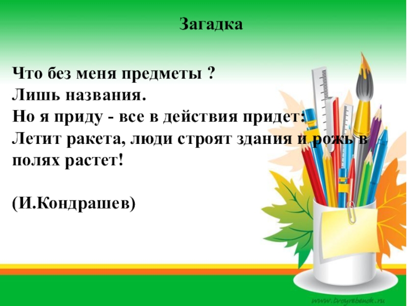 Это сайт презентаций, где можно хранить и обмениваться своими презентациями, докладами, проектами, шаблонами в формате PowerPoint с другими пользователями. Мы помогаем школьникам, студентам, учителям, преподавателям хранить и обмениваться учебными материалами.