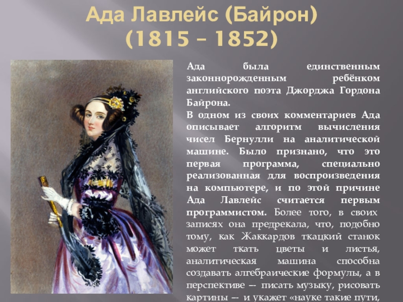 Слайд 14Ада Лавлейс (Байрон)
