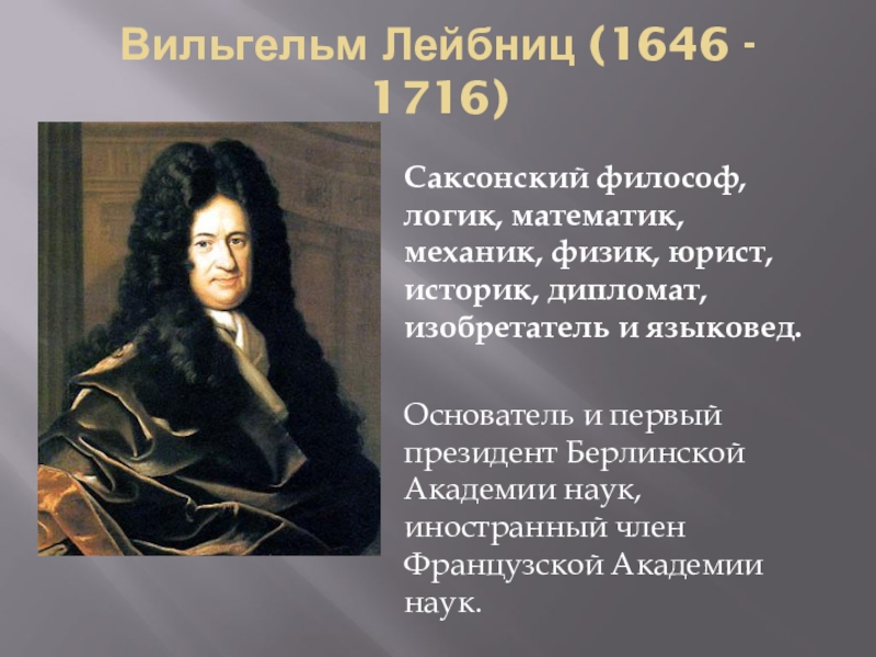 Слайд 8Вильгельм Лейбниц (1646 - 1716)