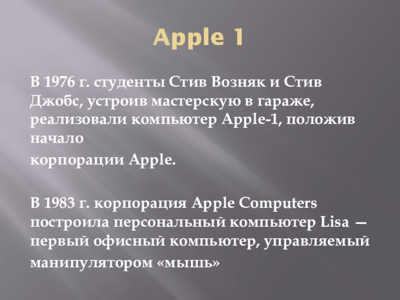 В 1976 г. студенты Стив Возняк и Стив Джобс, устроив
