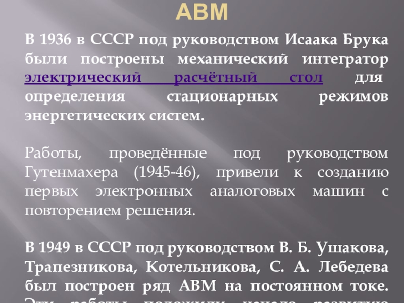 Если говорить об отечественных АВМ, то в 1949— 1950 гг.