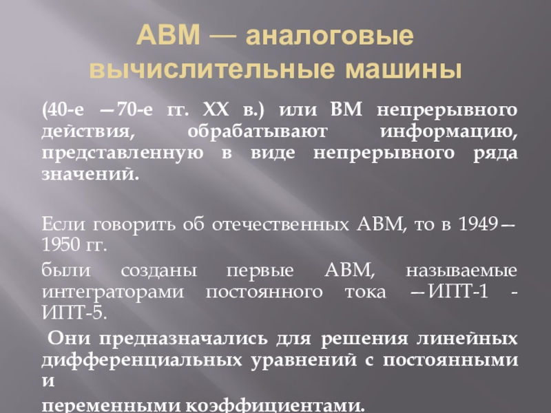 Слайд 22АВМ — аналоговые вычислительные машины