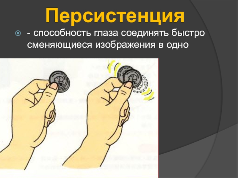 Персистенция- способность глаза соединять быстро сменяющиеся изображения в одно