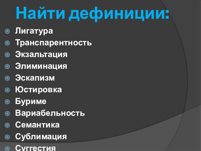 Презентация, доклад на тему Глоссарий очень эксцентричных дефиниций