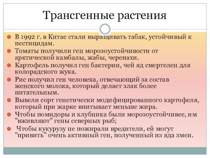 Получаются культуры которые не боятся вредителей и заморозков,