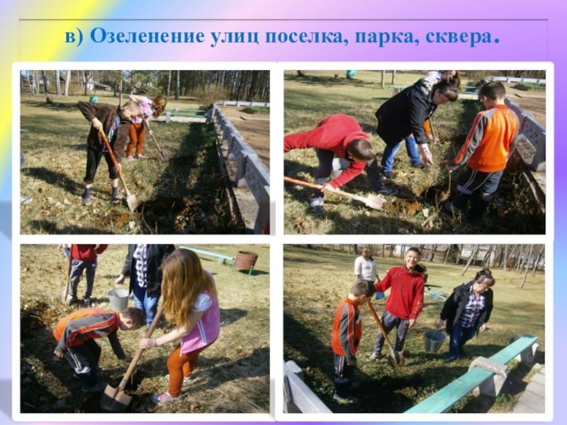 Слайд 27в) Озеленение улиц поселка, парка, сквера.