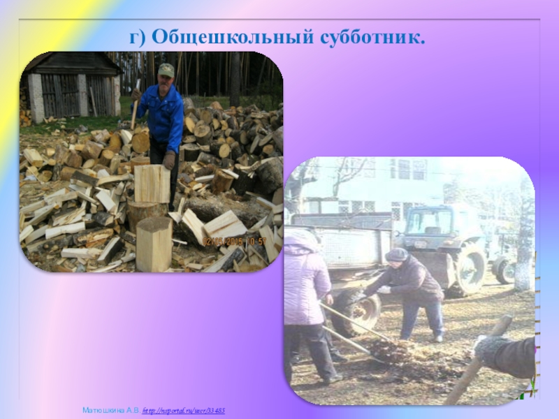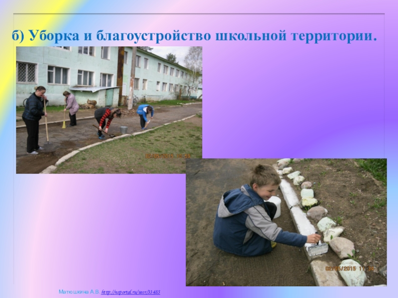 Слайд 26б) Уборка и благоустройство школьной территории.