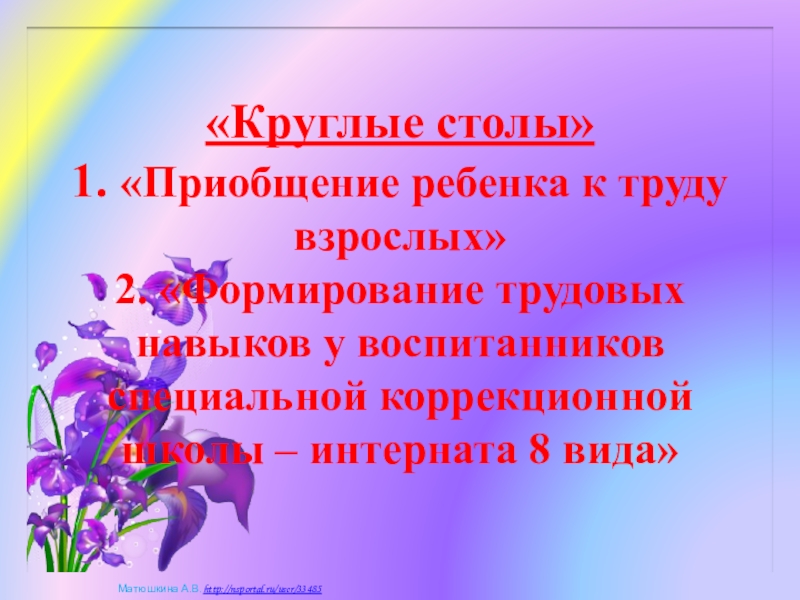 «Круглые столы» 1. «Приобщение ребенка к труду взрослых» 2. «Формирование трудовых навыков у воспитанников специальной коррекционной школы