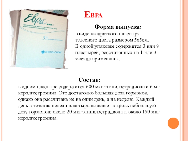 В одной упаковке содержится 3 или 9 пластырей, рассчитанных на 1 или 3 месяца применения.