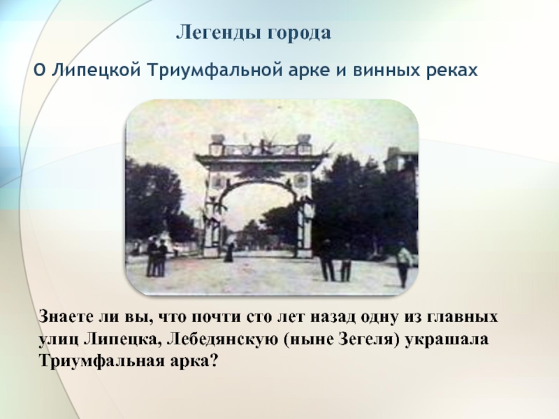 Знаете ли вы, что почти сто лет назад одну из главных улиц Липецка, Лебедянскую (ныне Зегеля) украшала Триумфальная арка?