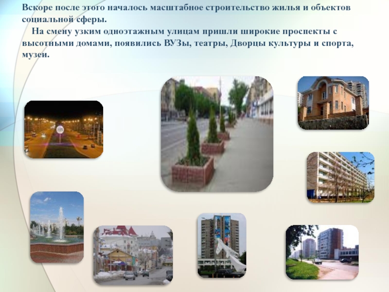 Слайд 27Вскоре после этого началось масштабное строительство жилья и объектов социальной сферы.