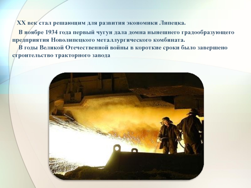 Слайд 25 XX век стал решающим для развития экономики Липецка.