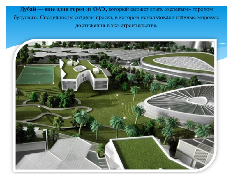 Слайд 23Дубай — еще один город из ОАЭ, который сможет стать «зеленым» городом будущего.