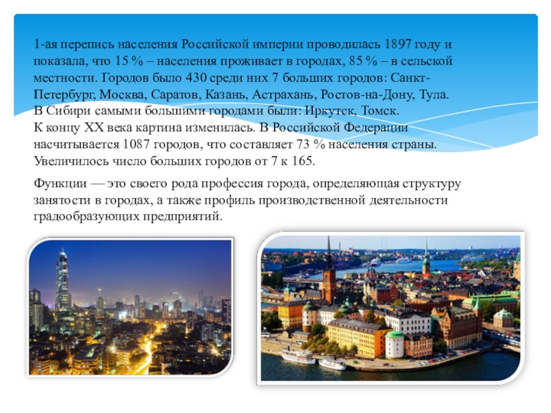 Функции — это своего рода профессия города, определяющая структуру занятости в городах, а также профиль производственной деятельности градообразующих предприятий.