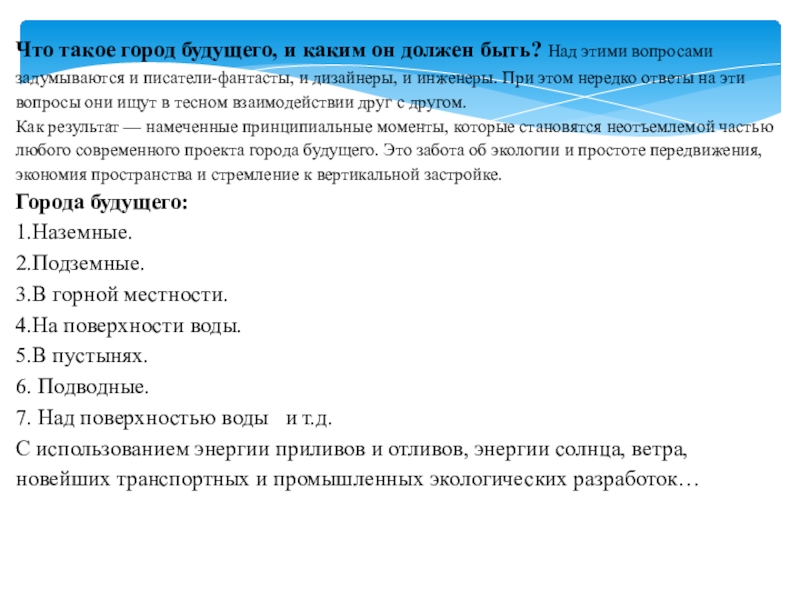 Слайд 19Город, не наносящий ущерба окружающей среде.