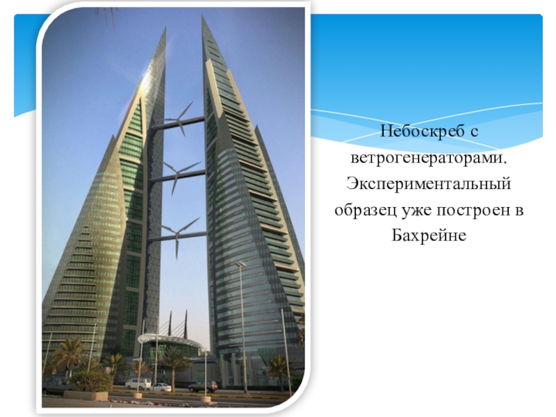 Небоскреб с ветрогенераторами. Экспериментальный образец уже построен в Бахрейне