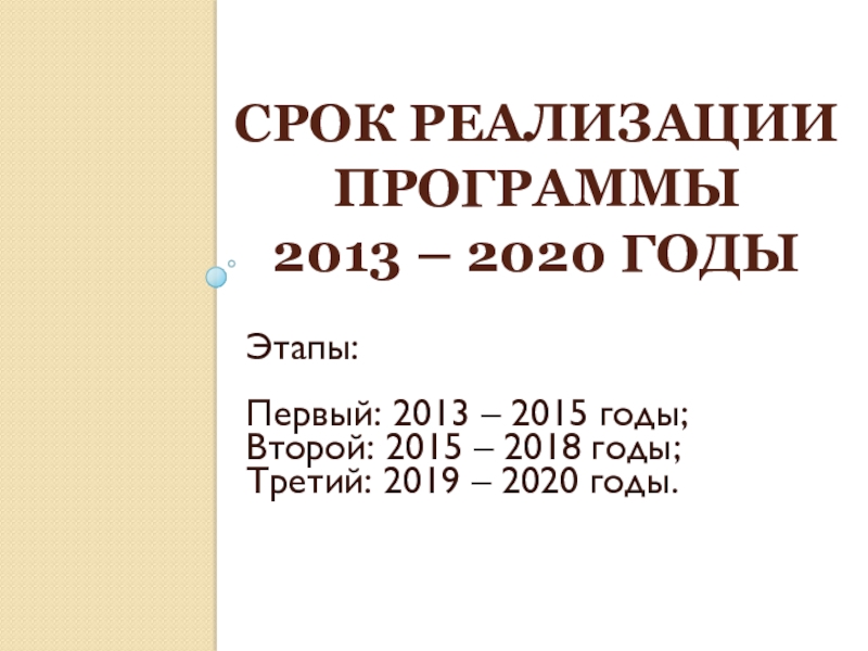 Слайд 2Срок реализации программы 2013 – 2020 годы