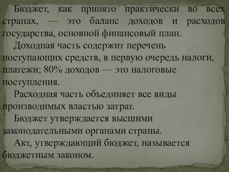 Слайд 5 Бюджет, как принято практически во всех странах, — это баланс доходов