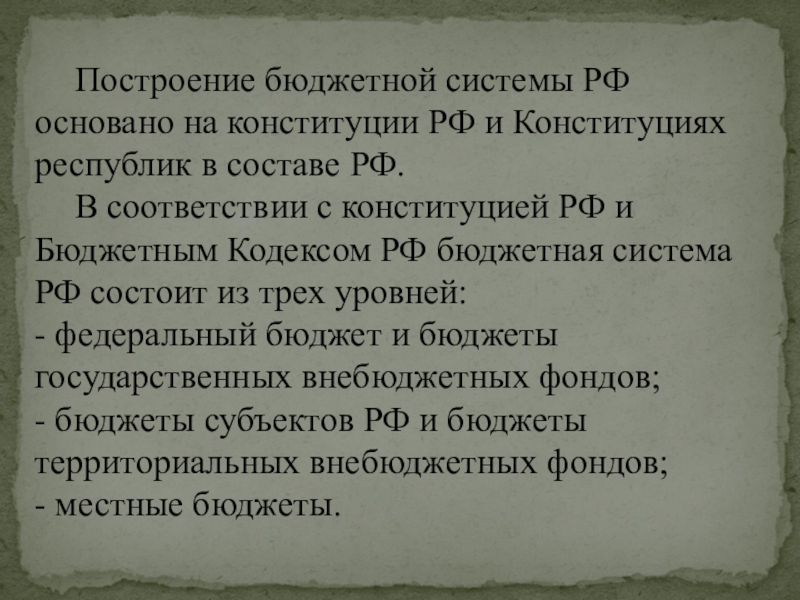 Слайд 11 Построение бюджетной системы РФ основано на конституции РФ и Конституциях республик