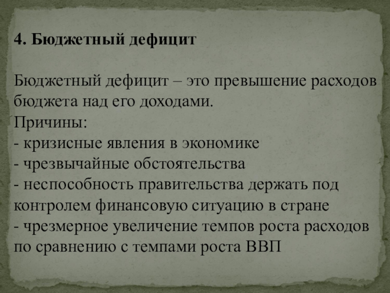 Бюджетный дефицит – это превышение расходов бюджета над его