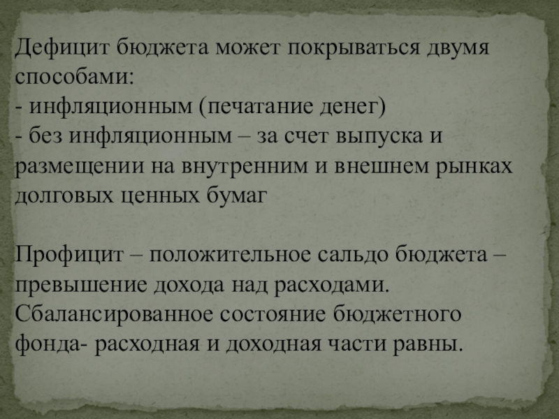 Слайд 18Дефицит бюджета может покрываться двумя способами:
