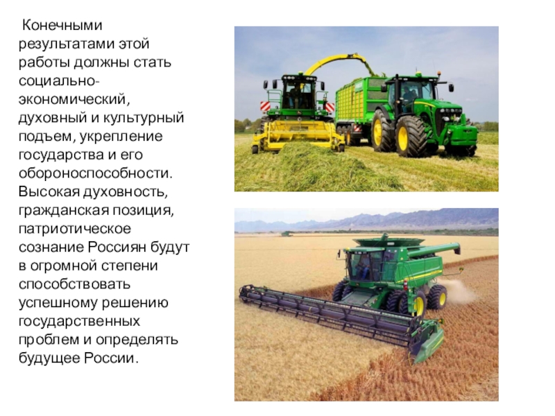 Слайд 19 Конечными результатами этой работы должны стать социально-экономический, духовный и культурный