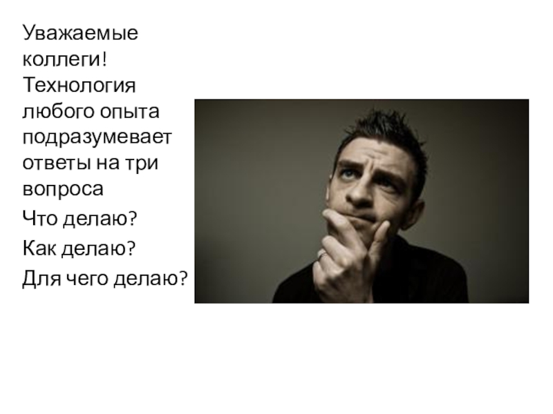Слайд 10Уважаемые коллеги! Технология любого опыта подразумевает ответы на три вопроса