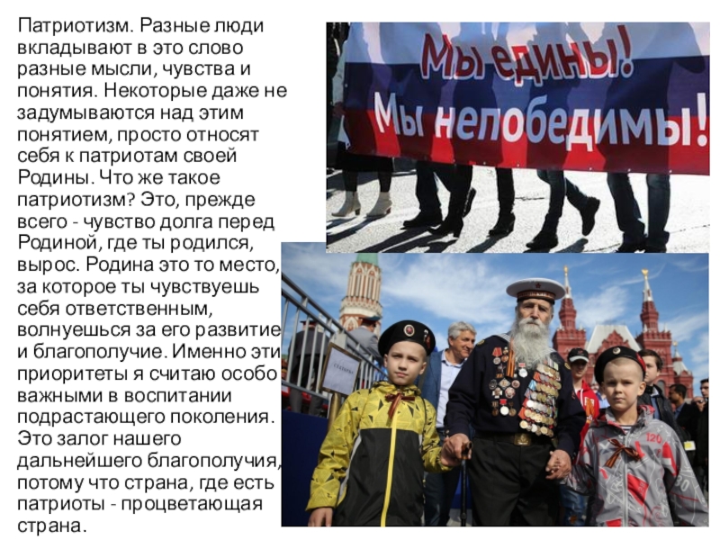 Слайд 7Патриотизм. Разные люди вкладывают в это слово разные мысли, чувства и