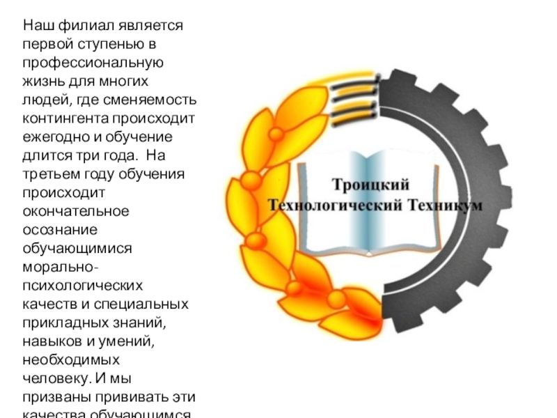 Слайд 14Наш филиал является первой ступенью в профессиональную жизнь для многих людей,