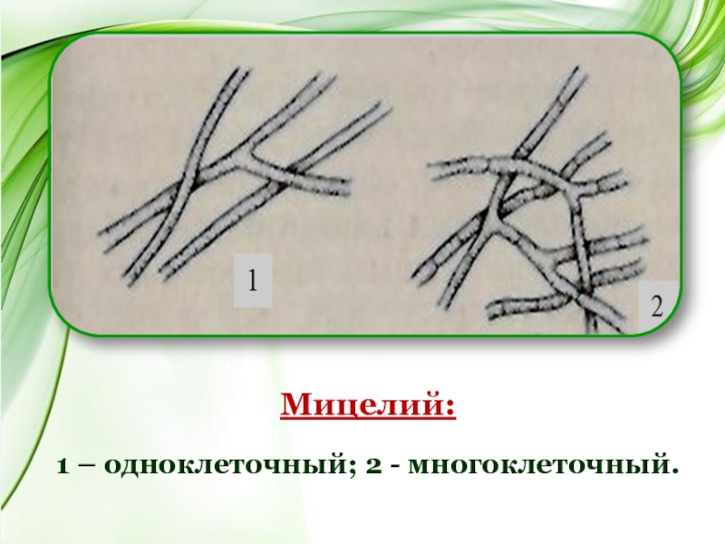 Мицелий:1 – одноклеточный; 2 - многоклеточный.