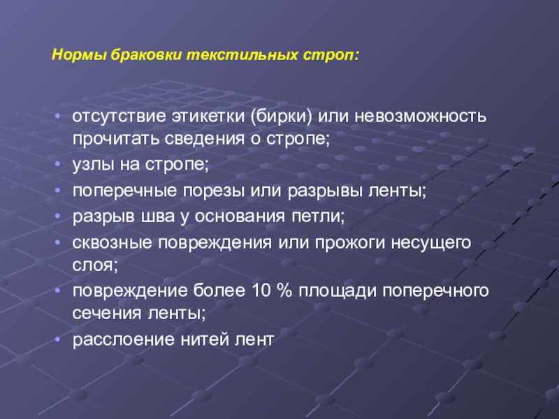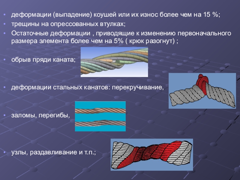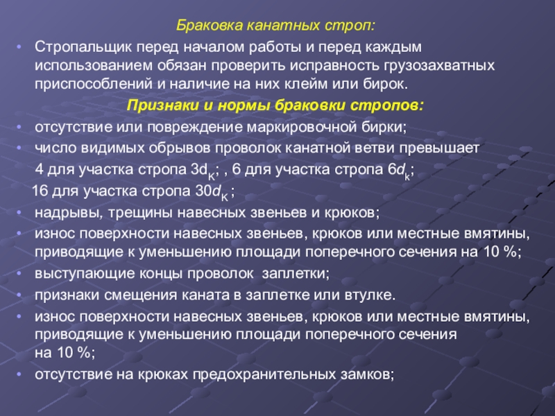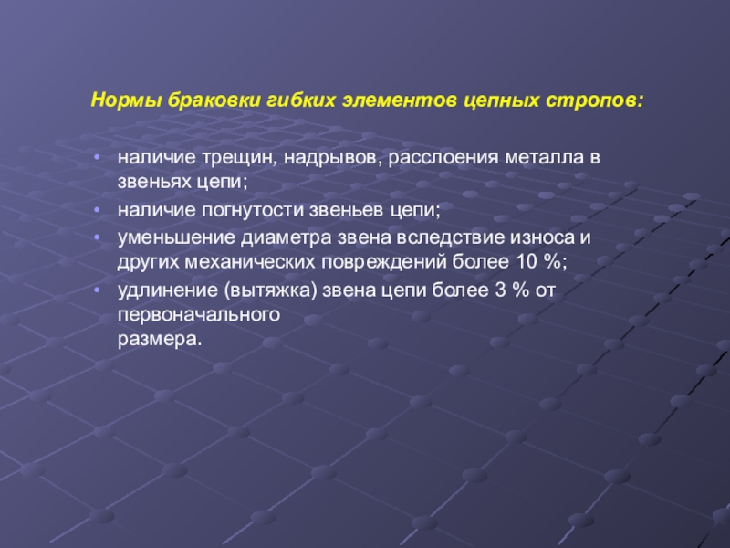 Слайд 14Нормы браковки гибких элементов цепных стропов: