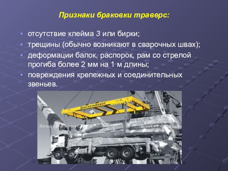 Слайд 20Траверсы — это съемные грузозахватные приспособления, предназначенные для строповки длинномерных и
