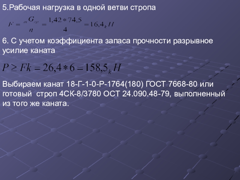 6. C учетом коэффициента запаса прочности разрывное усилие каната
