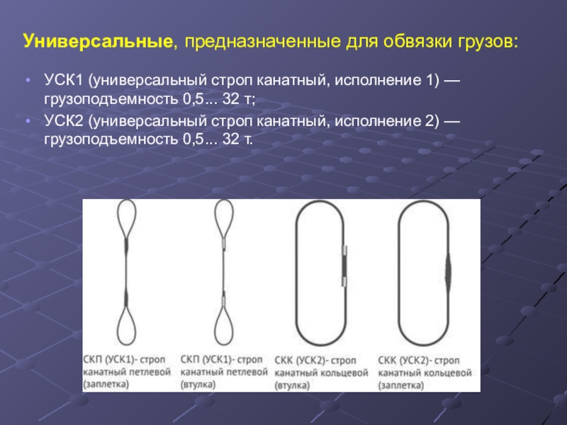 УСК2 (универсальный строп канатный, исполнение 2) — грузоподъемность 0,5... 32 т.