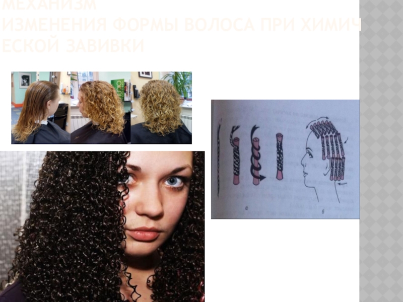 Слайд 4Механизм  изменения формы волоса при химической завивки
