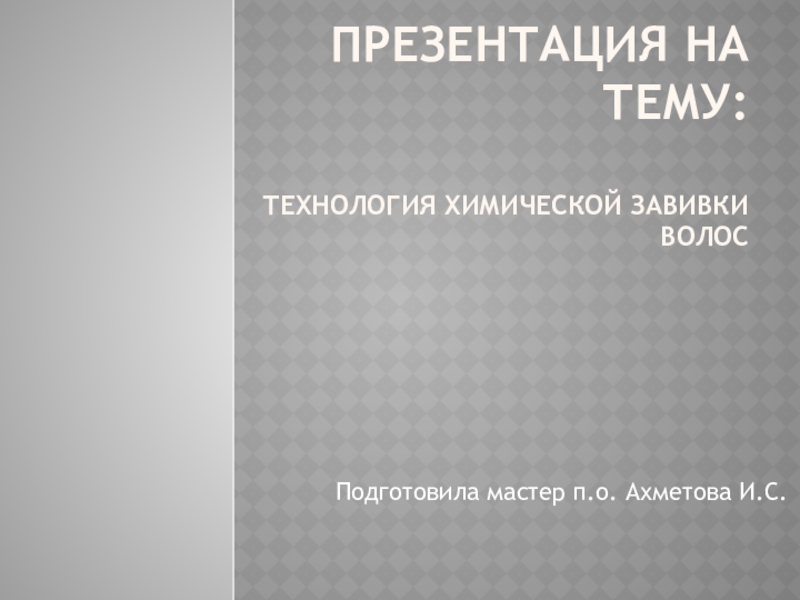 Презентация на тему:  Технология химической завивки волосПодготовила мастер п.о. Ахметова И.С.