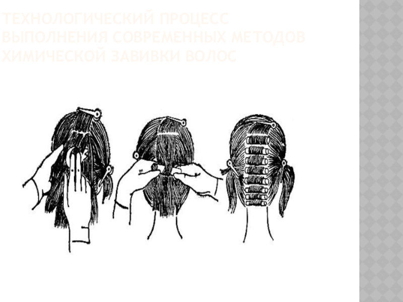 Слайд 7ТЕХНОЛОГИЧЕСКИЙ ПРОЦЕСС ВЫПОЛНЕНИЯ СОВРЕМЕННЫХ МЕТОДОВ ХИМИЧЕСКОЙ ЗАВИВКИ ВОЛОС