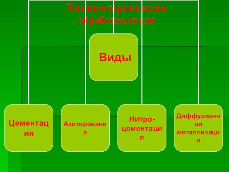 Химико-термическая обработка стали-называется процесс диффузионного насыщения поверхностного слоя деталей на небольшую глубину различными элементами (углеродом, азотом, хромом