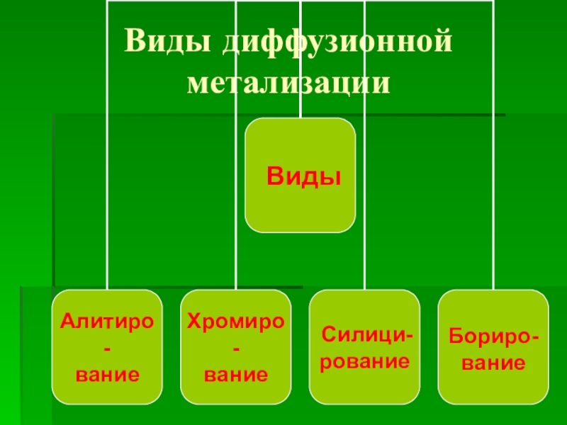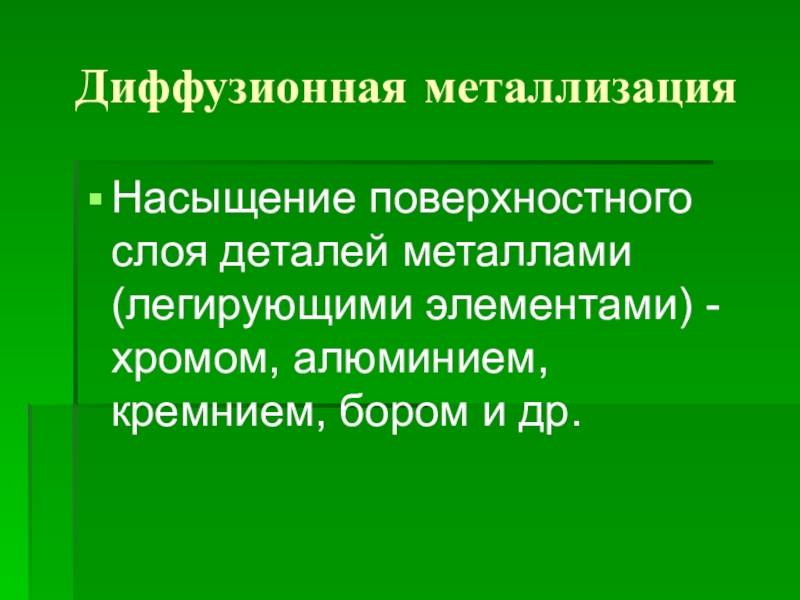 Диффузионная металлизация Насыщение поверхностного слоя деталей металлами (легирующими элементами) - хромом, алюминием, кремнием, бором и др.