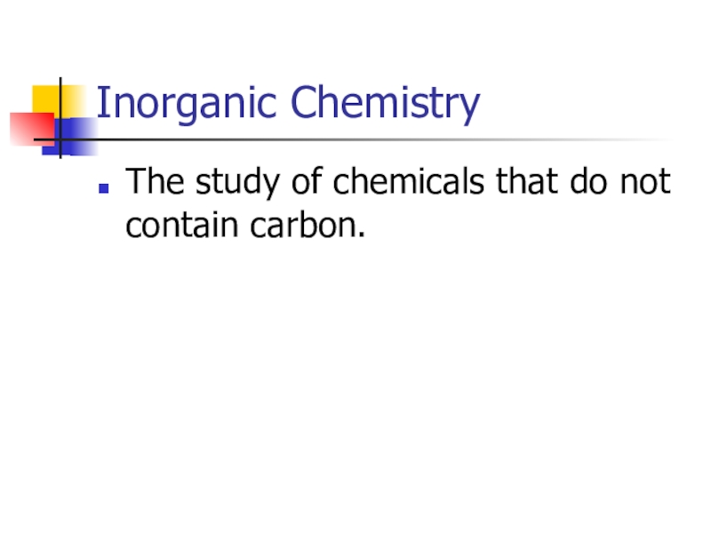 Inorganic ChemistryThe study of chemicals that do not contain carbon.