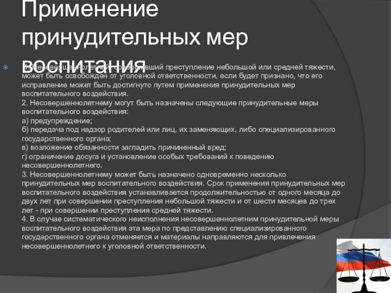 Слайд 18Применение принудительных мер воспитания