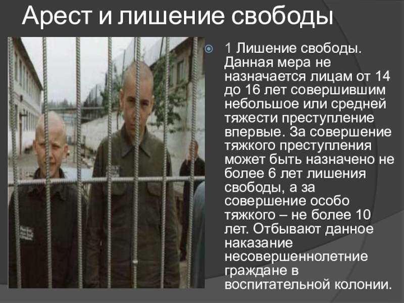 Слайд 17Арест и лишение свободы