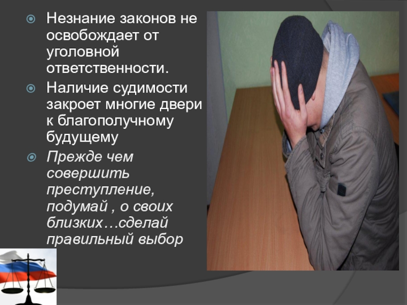 Слайд 20Незнание законов не освобождает от уголовной ответственности.