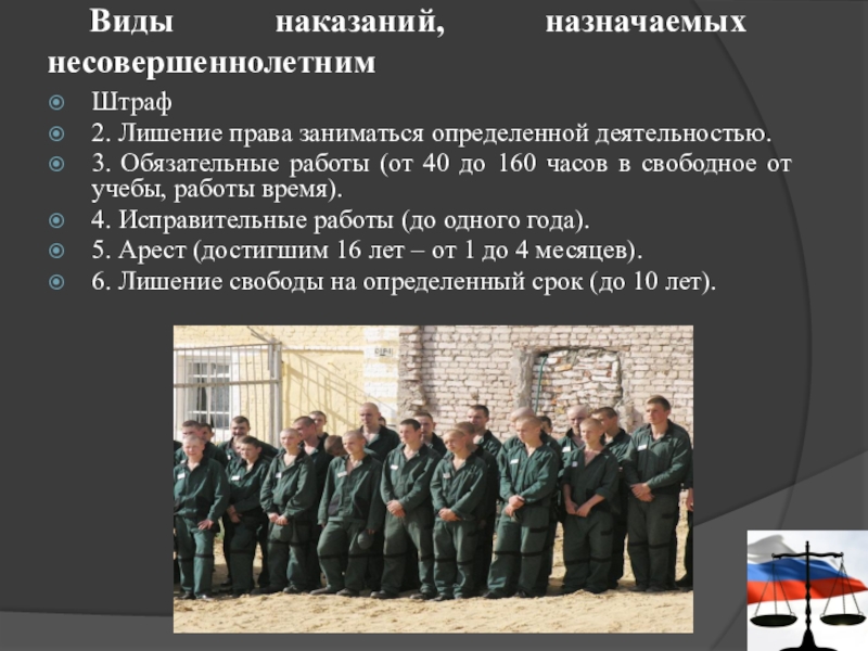 Слайд 13Виды наказаний, назначаемых несовершеннолетним