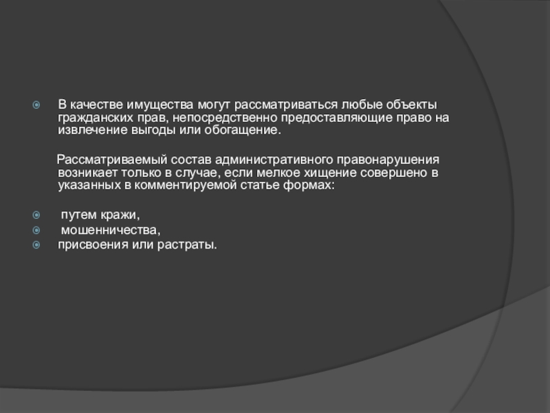 Слайд 3В качестве имущества могут рассматриваться любые объекты гражданских прав, непосредственно предоставляющие