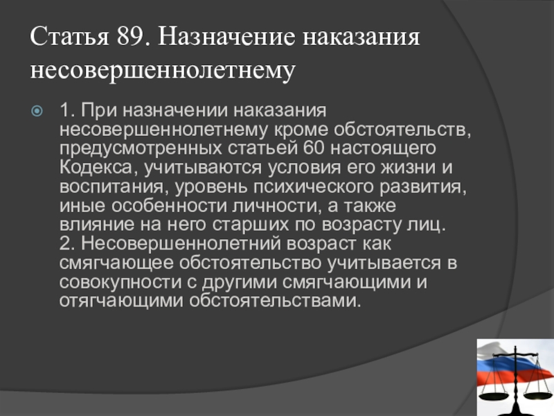 Слайд 19Статья 89. Назначение наказания несовершеннолетнему