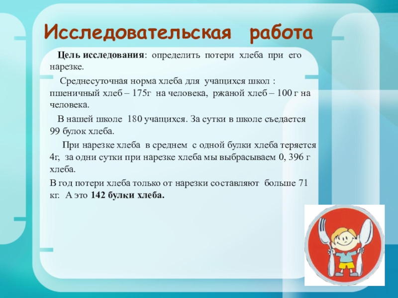 Цель исследования: Призвать к бережному отношению и уважению к хлебу