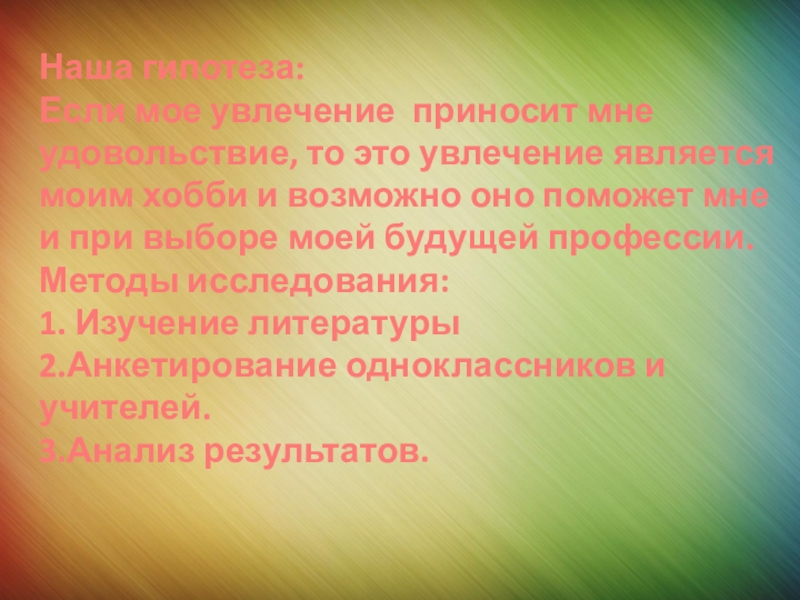 2. Любое занятие сможет стать вашим хобби, если заниматься им систематически, отдавая творческие силы и любовь.